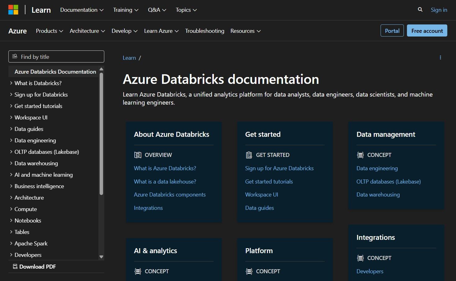 • Comprehensive Microsoft Learn documentation covering all Azure Databricks features, tutorials, and best practices.