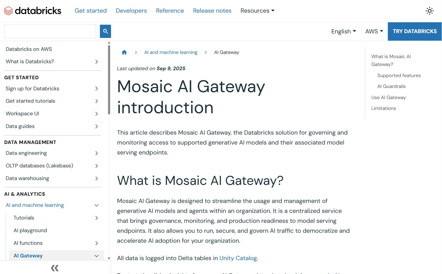 • Mosaic AI Gateway (GA)