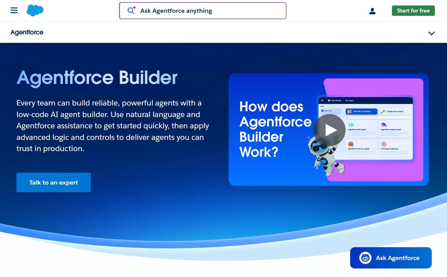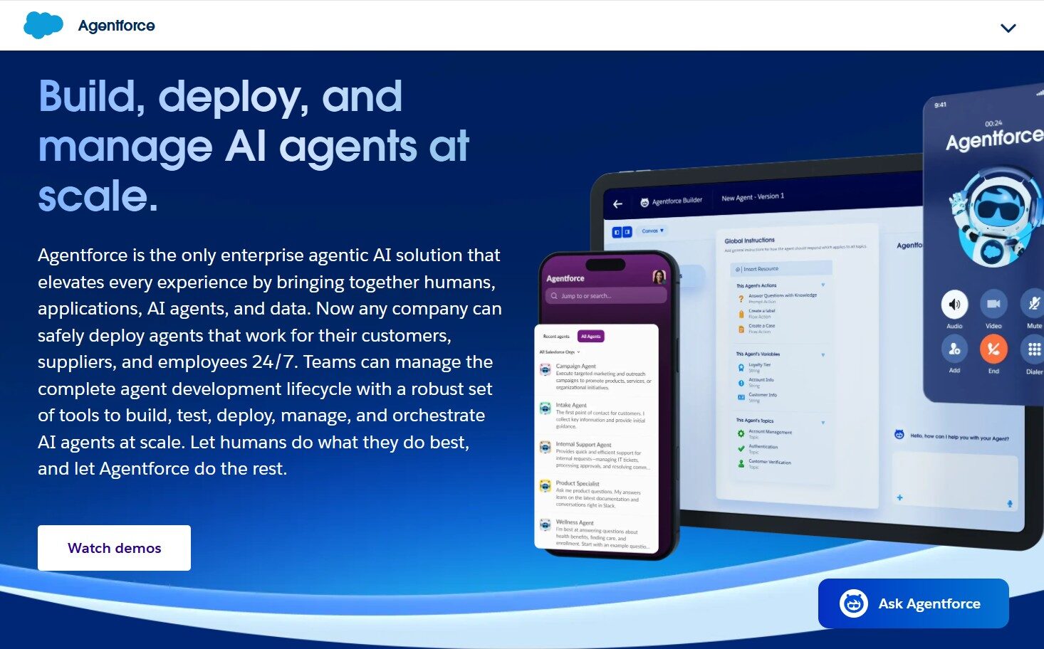 Salesforce Agentforce is the world’s #1 digital labor platform enabling enterprises to build and deploy autonomous AI agents that operate 24/7 across sales, service, marketing, and commerce. Powered by the Atlas Reasoning Engine with System 2 reasoning capabilities, Agentforce delivers 50% lower latency with real-time response streaming while autonomously handling over 85% of support requests. With 200+ partners on AgentExchange marketplace and flexible pricing from $0.10 per action, Agentforce transforms business operations through trusted, proactive agents grounded in enterprise data with built-in guardrails and compliance controls.